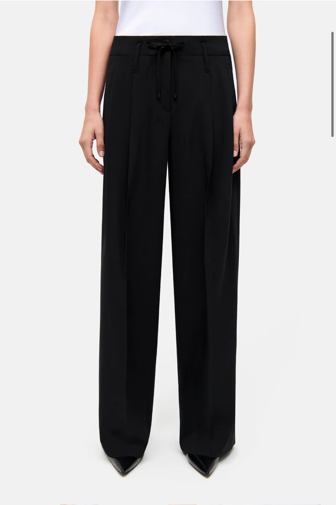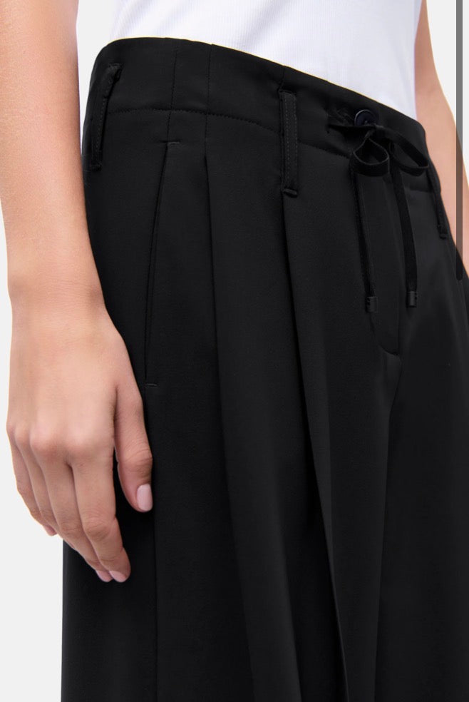 ADDISON wide-leg trousers in full length. These black trousers impress with their modern, wide-cut leg and the smooth, soft feel of the lightweight polyester bistretch fabric. A contemporary look meets relaxed jogging style, making them perfect for everyday wear thanks to their comfortable fit. The easy-care design makes the ADDISON trousers uncomplicated to use, while the double pleats and drawstring waist add distinctive details.