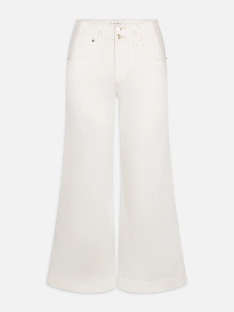 Crafted in super-stretch denim, this cropped trouser silhouette has a flattering high-rise waist, subtle contrast stitching and vertical pocket seams. Finished with a vintage-inspired double-button closure.