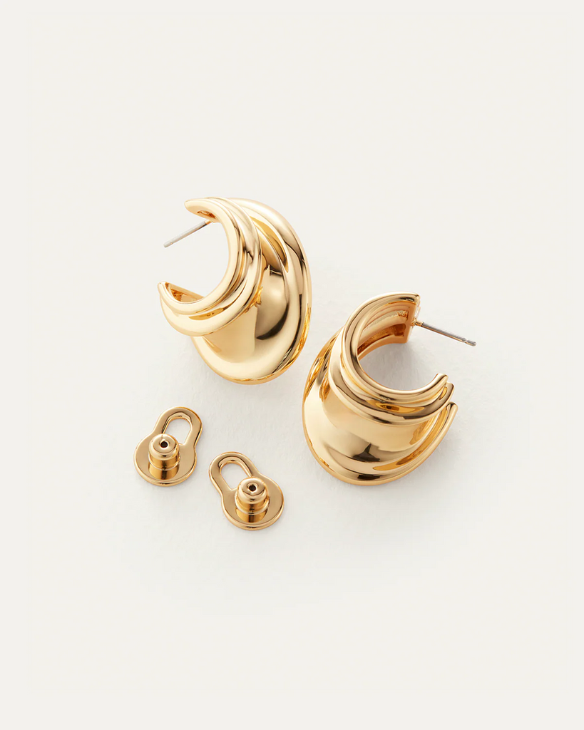 dramatic take on a hoop earring, these gold hoops boast sculptural stretches and organically formed grooves. They are thoughtfully-designed to be lightweight and are paired with Lobe Lifters for an extra bout of support.