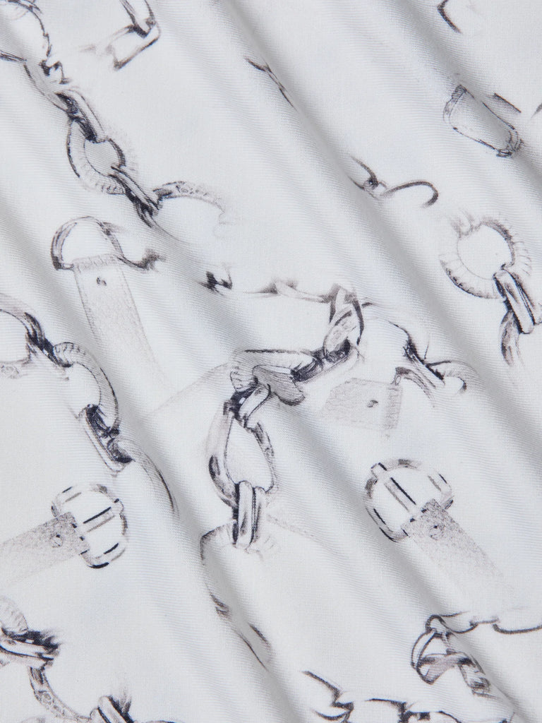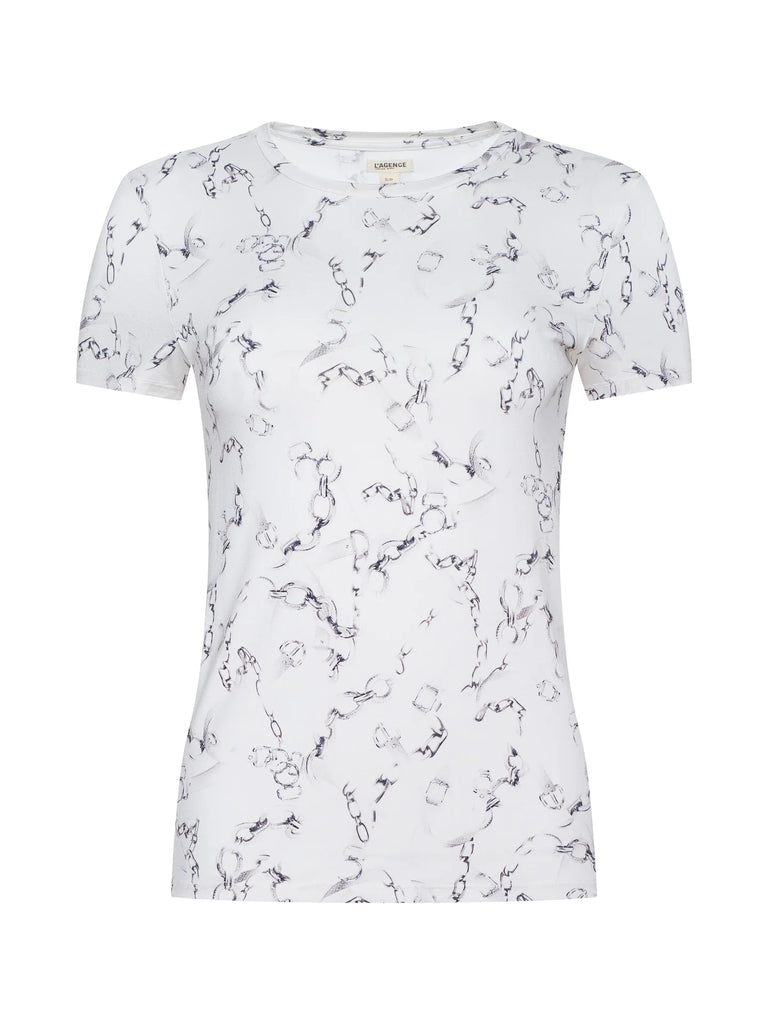 Our all-time bestselling tee. Crafted in a soft, supple fabrication with a flattering, slim cut, the Ressi returns every season in fresh shades and prints—and is worth collecting in every color. Now back in ivory with a gray chain print.