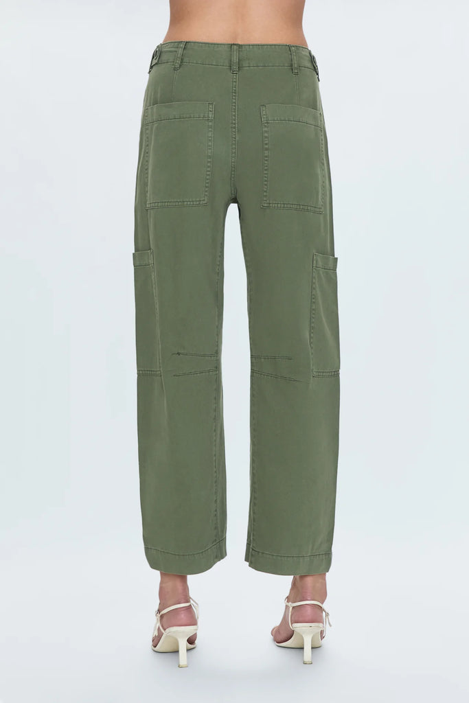 Utility, with a feminine edge. Sabrina delivers a flattering take on utility with a curved wide leg, front patch pockets, and an easy drawstring waist. The cropped 27" inseam shows just the right amount of ankle, while the soft 100% cotton fabric moves with you. Finished in Meadow, a rich green that pairs effortlessly with neutrals or prints.