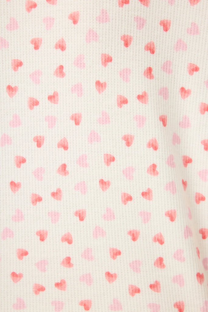 Sweet, soft, and made for lounging with love. This two-piece boxer set features a relaxed long-sleeve top and matching shorts in baby peachy waffle fabric. The ivory base is sprinkled with tiny pink hearts—the perfect playful touch for cozy mornings, self-care nights, and everything in between.
