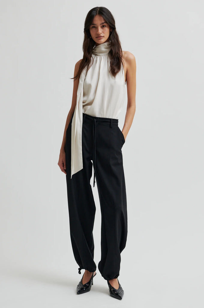Second Female sleeveless high-neck blouse. The blouse is made in a silky-soft viscose-tencel blend. Featuring a high neck with tie fastening at one side. Regular fit.